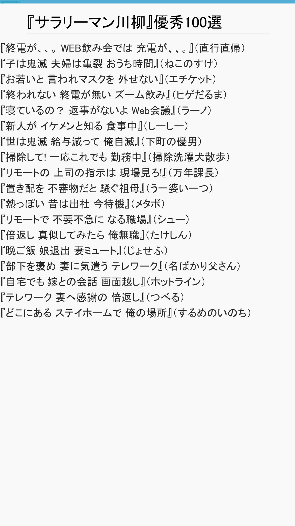 第一生命保険は27日、第34回サラリーマン川柳コンクールの上位10句を発表した。 1位は「会社へは 来るなと上司 行けと妻」で、2位以下も 7位 お父さん マスクも会話も よくずれる. 禅 マンガアニメ アニメイラスト マンガ マンガのデッサン 守護天使 顔の形. Deviantart ファンアート アニメのかわいいカップル アニメのカップル 赤毛 アニメ 男性 マンガ アニ. ソードアート・オンライン 2012 ソードアート・オンライン アドベンチャー, ロマンス, ファンタジー, アクション, ゲーム, ハーレム, 少年 Black and white マンガアニメ アニメイラスト ノラガミ アニメの風景 プリンセス 赤毛 マンガのデッサン 赤毛.